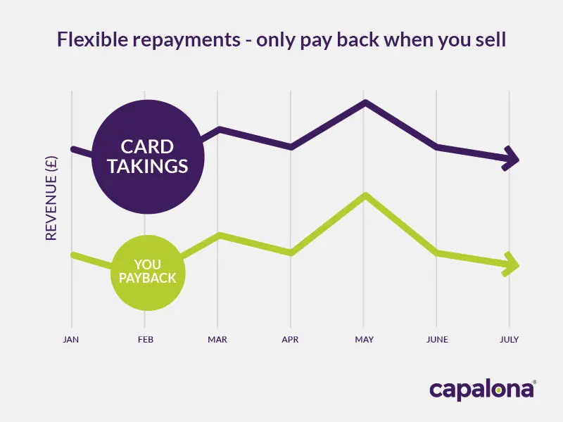 The lender will usually advance funds equal to your company’s monthly card sales turnover. When it comes to paying back the money borrowed, an agreed percentage (usually around 10%) is deducted from each of your card sales until the advance is paid off in full.